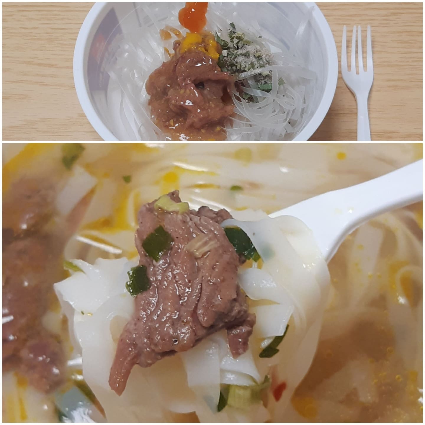 전체적으로 쌀국수에 입문하기에 좋은 제품이라고 생각합니다. 두툼한 건더기가 들어있어 퀄리티가 좋고 면발이며 국물이며 판매하는 쌀국수와 비슷합니다. 다시 사먹을 의향이 있냐면.. 가격만 좀 낮추면 사먹을 것 같네요. 요즘 컵라면들도 1,800원정도 하는데 두툼한 소고기가 들어간 컵라면이 더 낮아질 수 있을까 싶긴 합니다.