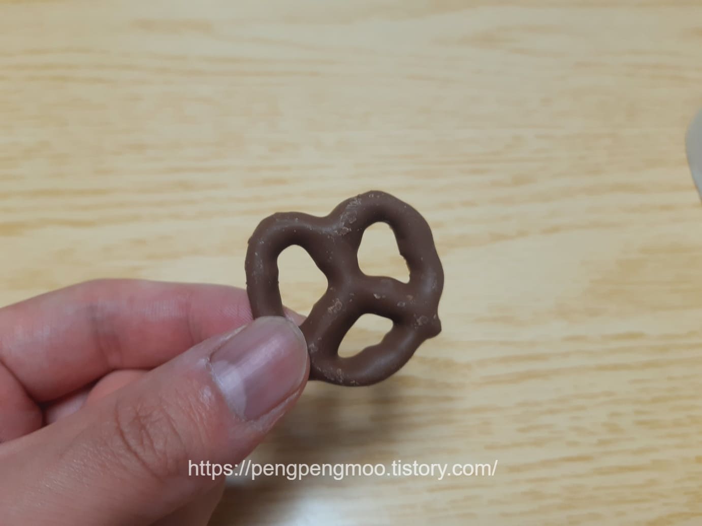 표지를 보면 프레즐에 초콜릿이 코팅 되어있는데 생각보다 두껍게 코팅이 되어있습니다.