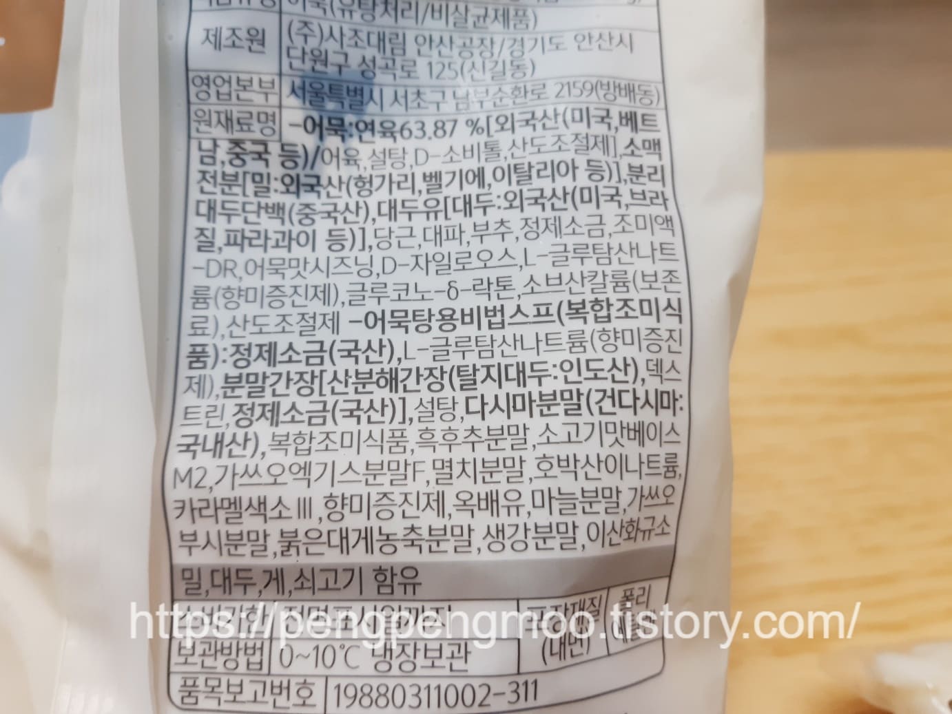 훑어보니 생선살이 63.87% 이고 소맥전분이 나머지를 채우는 것 같습니다.