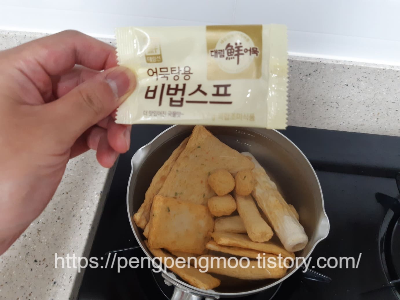 물 900ml에 스프와 어묵을 넣고 8~10분 가량 끓이면 완성된다고 합니다.