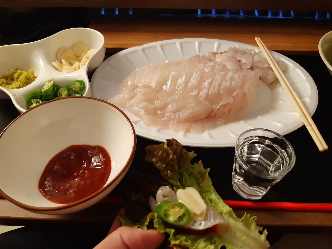 안녕하세요 펭펭무 입니다. 며칠전에 동네에서 회를 시켜먹었어요. 저는 평소에 회를 좋아하지도 않고 즐기지도 못하는데요. 그럼에도 갑자기 회가 먹고싶은 날이 있어요. 그때를 잘 참았어야하는데.. 회를 먹으면 뭐랄까 배가 차는 느낌이 안들고 탄수화물이 땡기는 느낌이 들더라구요. 메뉴는 광어회 소짜, 25,000원 이었구요. 사진 이외에 상추쌈과 막장, 매운탕거리도 들어있어서 구성이 아주 좋았어요. 특히 와사비. 마트에서 파는 연와사비가 있고 생와사비가 있잖아요? 근데 이 집은 와사비를 진짜로 갈아서 주시는건지 모르겠지만 와사비의 식이섬유가 다 느껴지는 와사비를 주셨어요. 고급진 일식집은 가보지 못해서 그런지 처음 먹어보는 와사비 식감이었는데 먹자마자 이게 생와사비구나 싶었습니다. 하지만 이렇게 맛있게 준비된..