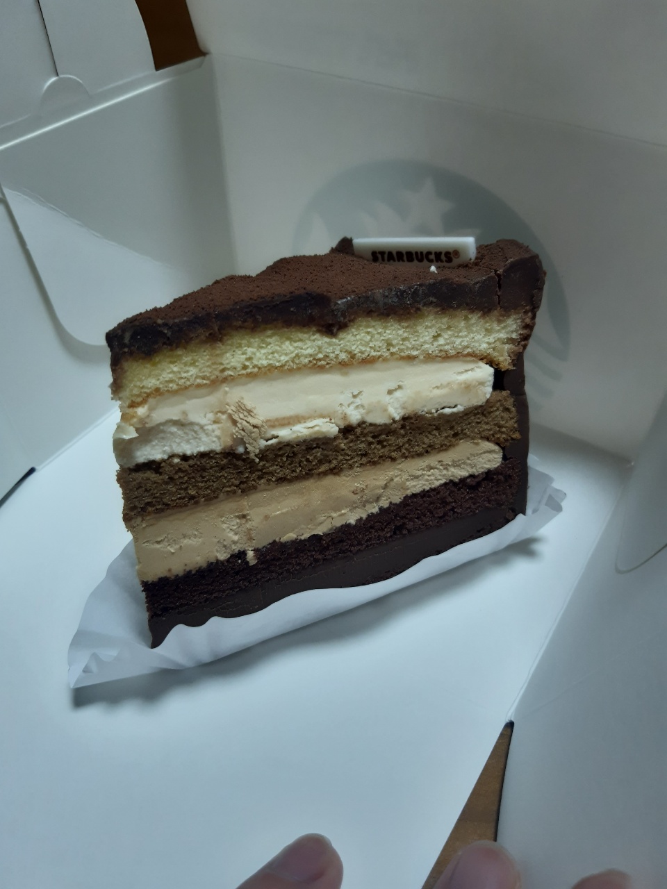 안녕하세요 펭펭무에요. 오늘은 오랜만에 달달한것도 먹고 싶고 핸드폰에 잠자던 기프티콘이 있어서 스타벅스에 다녀왔습니다. 이것저것 보다가 7레이어 가나슈 라는 조각케이크가 보여서 구매해봤어요. 첫인상은 엄청 꾸덕꾸덕하면서 달 것 같았네요. 평소에는 커피도 잘 안마시고 하는데 달달한거 먹을때는 씁쓸한거랑 같이 먹는게 맛있더라구요 그래서 칙촉같은 엄청 달달한 과자 먹을때는 녹차나 홍차랑 같이 먹기도 했었습니다. 그래서 오늘은 아아 톨사이즈랑 같이 먹었어요. 보시면 이름에 걸맞게 7레이어, 7개 층으로 나뉘어 있어요. 각각의 크림이 맛이 진하진 않고 적당히 어울리는 맛이었어요. 생각한것과 정반대로 저 버터크림층은 포크로 찍을땐 꾸덕? 한 느낌이 나는데 먹으면 그냥 녹아버려요. 약간 뻑뻑하면서 꾸덕할 줄 알았는데..